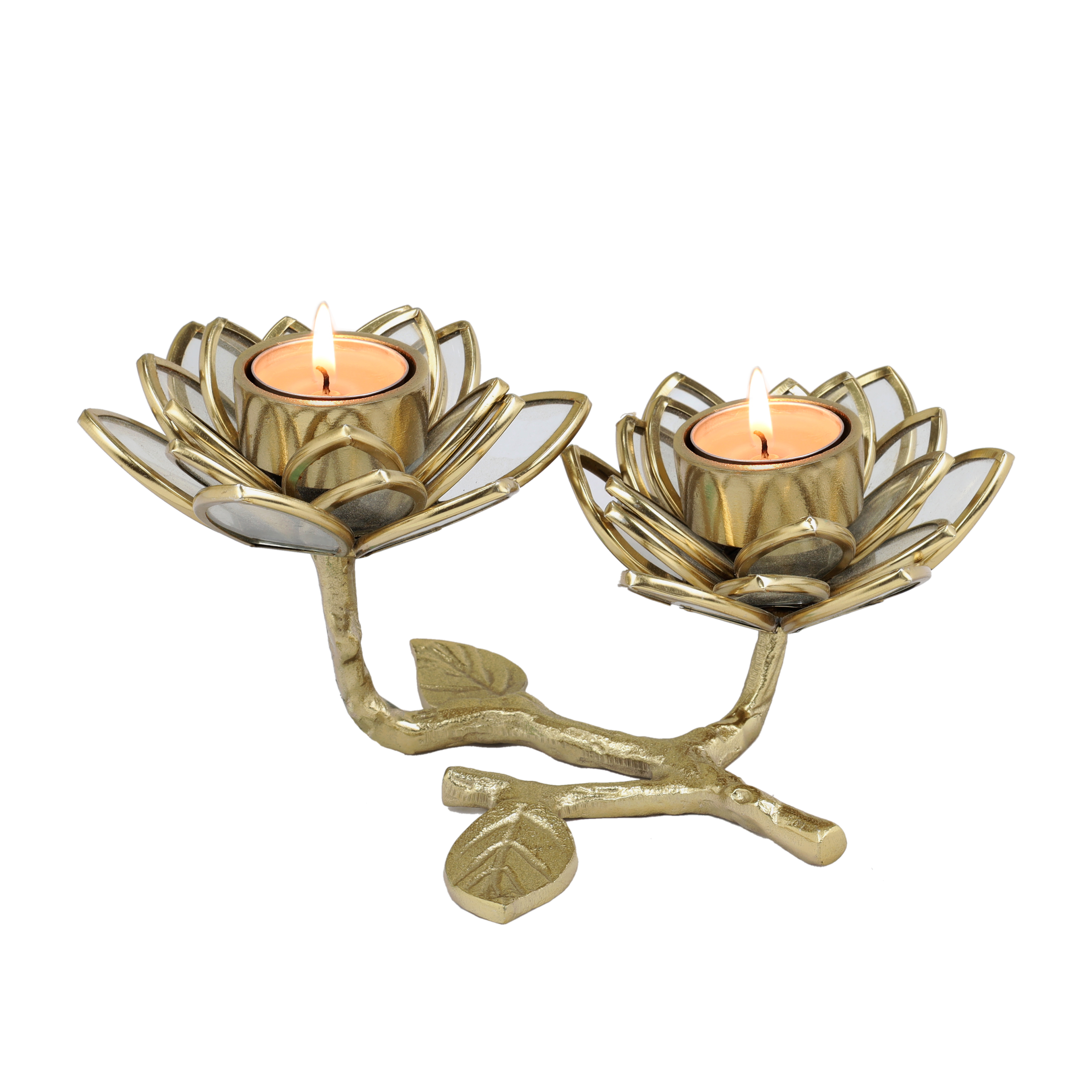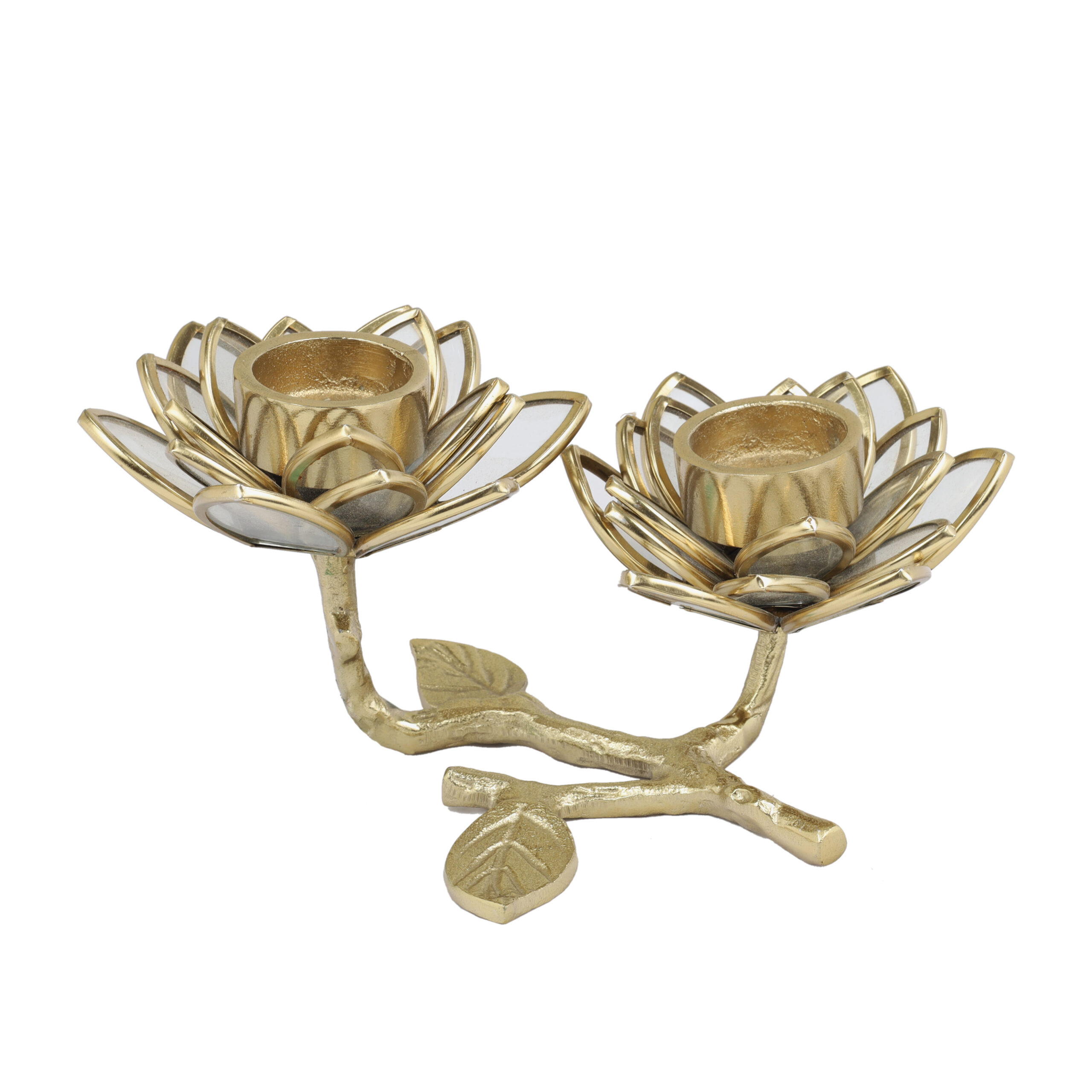 ELEGANT LOTUS TEA LIGHT HOLDER (2 Stems)